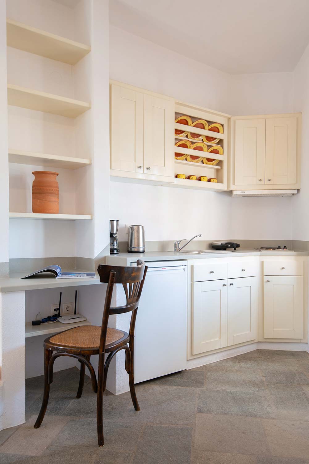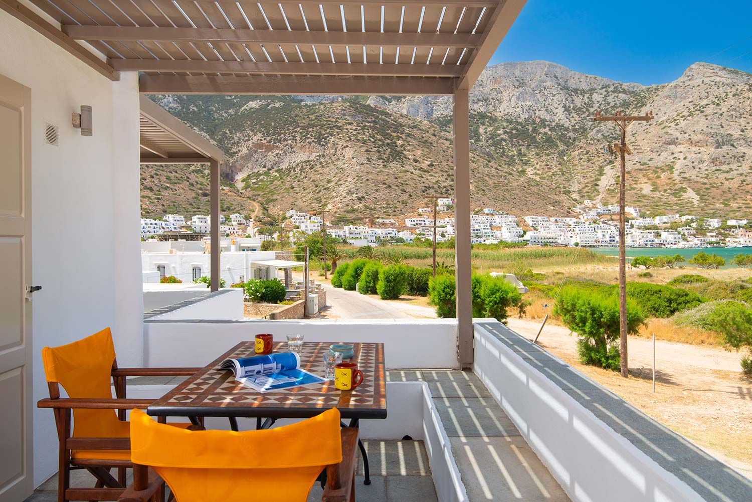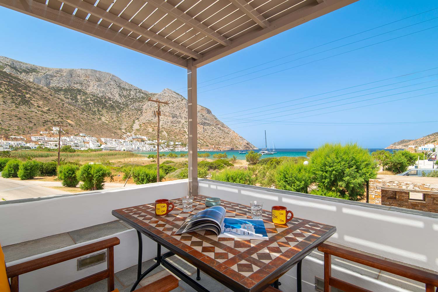 Το Διαμέρισμα 2, βρίσκεται επίσης στον πρώτο όροφο και διαθέτει μαγευτική θέα προς τη θάλασσα, προσφέροντας μια απόλυτα χαλαρωτική διαμονή. Το διαμέρισμα είναι πλήρως εξοπλισμένο με κουζίνα που διαθέτει όλα τα απαραίτητα για την προετοιμασία γευμάτων, καθώς και ένα ευρύχωρο καθιστικό με παραδοσιακή διακόσμηση και φωτεινά χρώματα που προσδίδουν ζεστασιά στον χώρο. Το άνετο υπνοδωμάτιο με το σιδερένιο κρεβάτι προσφέρει την τέλεια αίσθηση ηρεμίας και άνεσης. Το μπάνιο είναι μοντέρνο και άνετο, με λιτή διακόσμηση που δένει αρμονικά με την κυκλαδίτικη αισθητική. Στο μπαλκόνι, οι επισκέπτες μπορούν να απολαύσουν την ανεμπόδιστη θέα στο γαλάζιο του Αιγαίου.