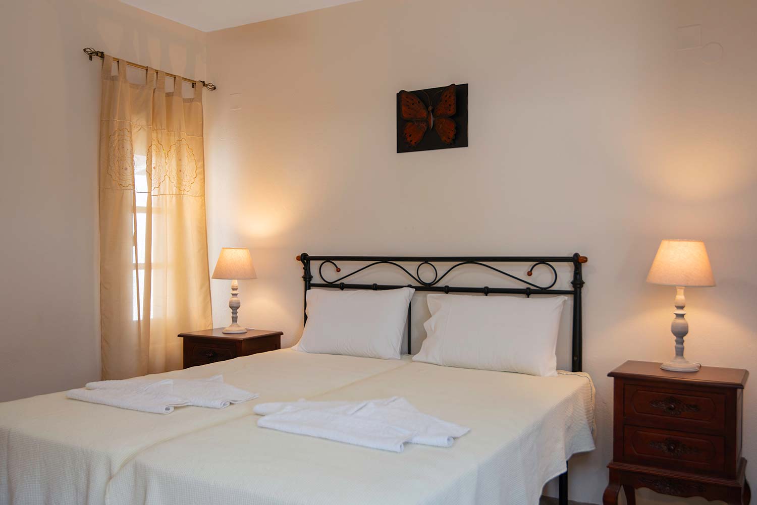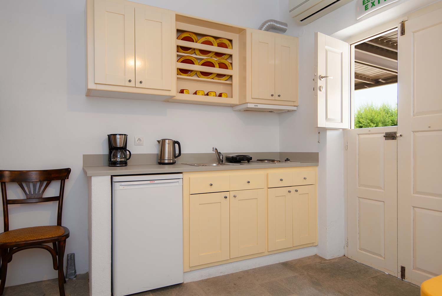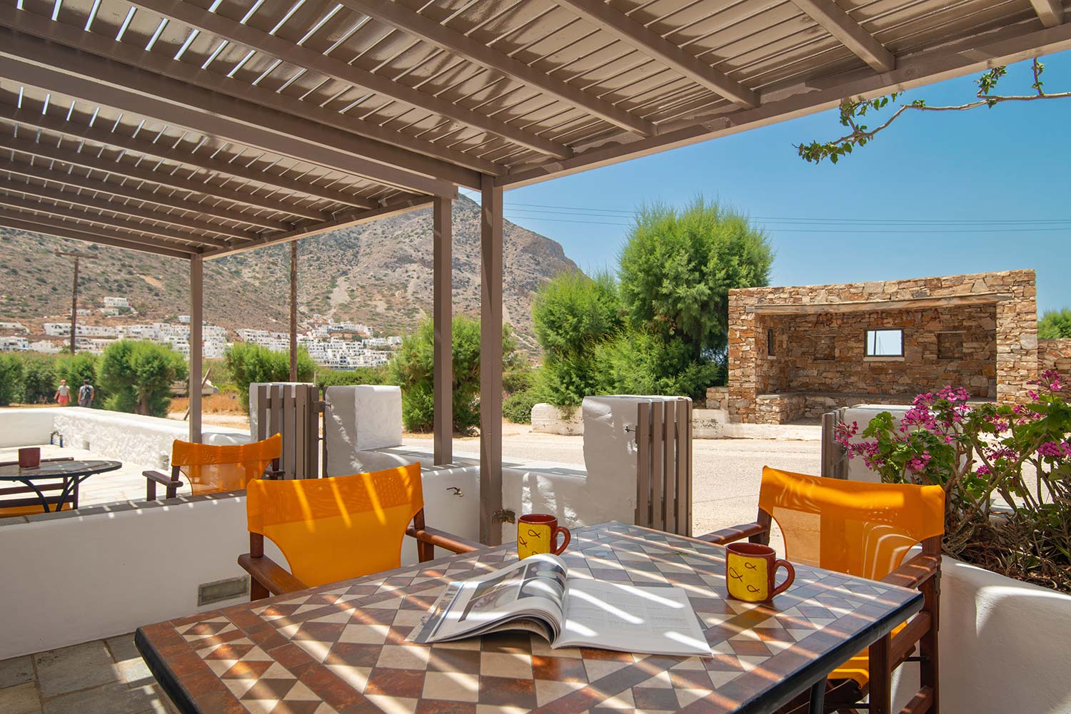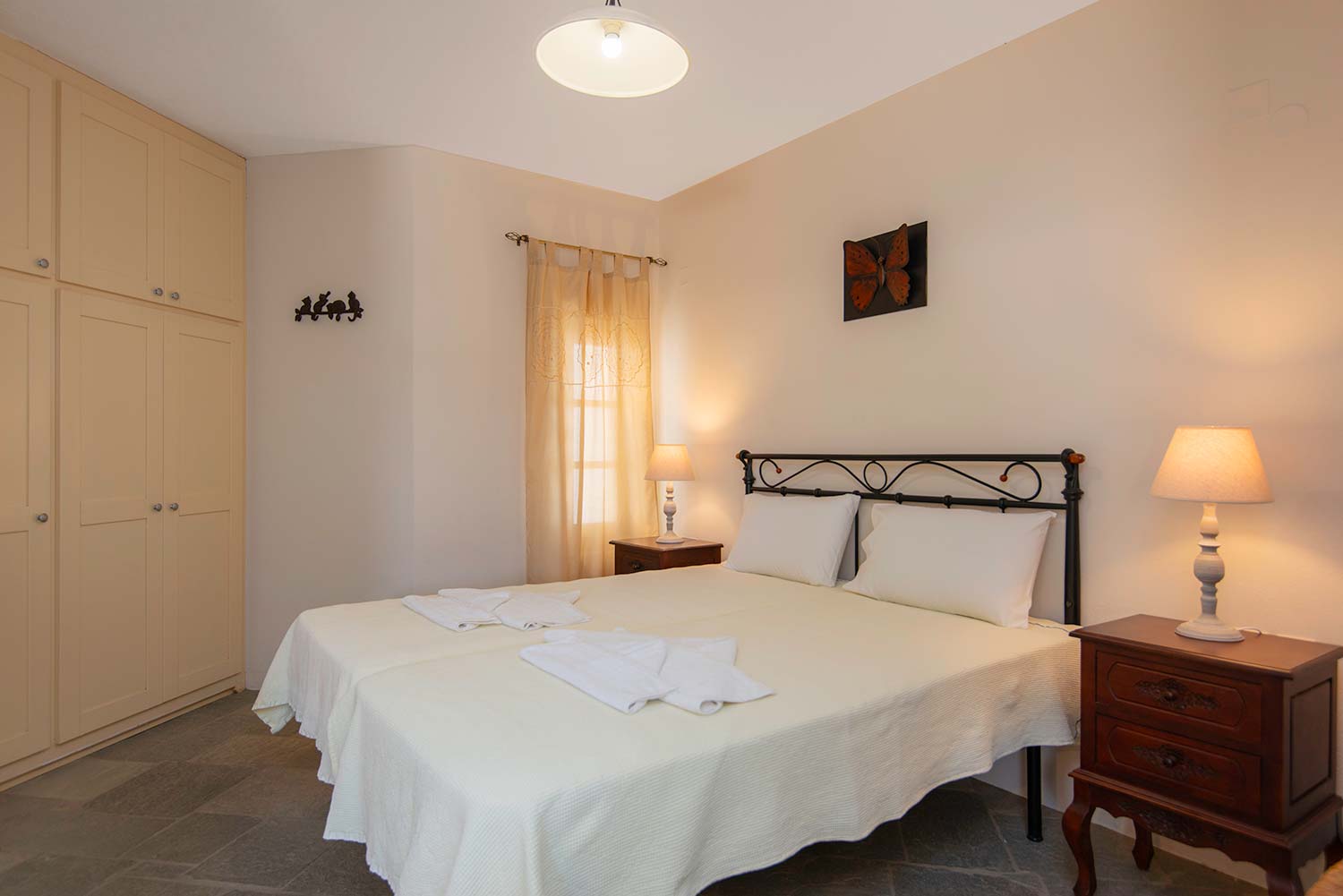 Το διαμέρισμα 4, επίσης στο ισόγειο, προσφέρει έναν γαλήνιο χώρο με παραδοσιακή διακόσμηση και όλες τις σύγχρονες ανέσεις. Με άμεση πρόσβαση σε έναν όμορφα διαμορφωμένο εξωτερικό χώρο, ιδανικό για στιγμές χαλάρωσης κάτω από την πέργκολα. Το κουζινάκι είναι πλήρως εξοπλισμένο, ενώ το υπνοδωμάτιο διαθέτει ένα άνετο κρεβάτι και καλαίσθητη διακόσμηση. Το καθιστικό, με τα έντονα χρώματα και τις ζεστές πινελιές, προσκαλεί τον επισκέπτη να απολαύσει ήσυχες στιγμές ξεκούρασης.