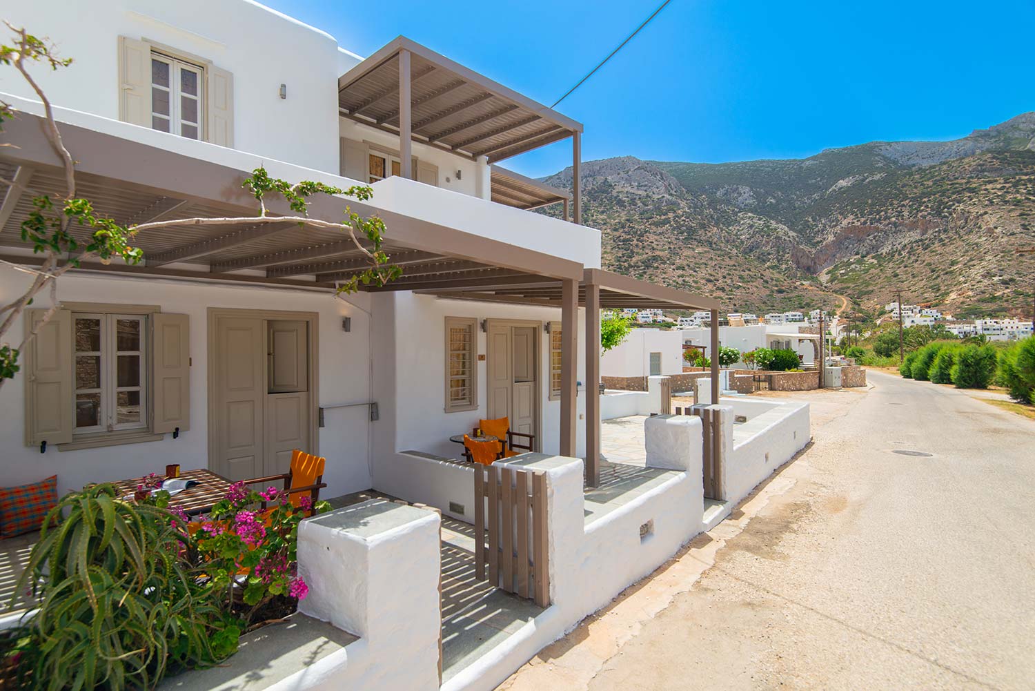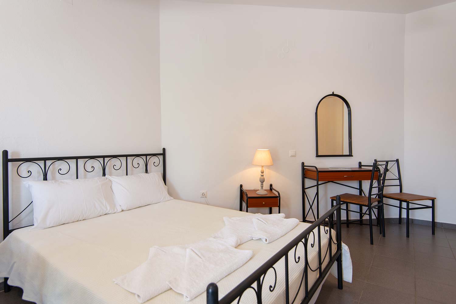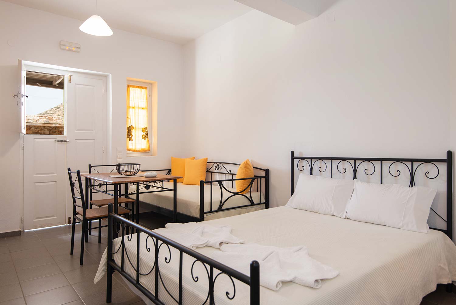 Ευρύχωρο διαμέρισμα διακοσμημένο στο ίδιο μοτίβο, που προσφέρεται για μικρές οικογένειες καθώς διαθέτει μεγάλο ψυγείο και κουζίνα-φούρνο. Ο ενιαίος χώρος περιλαμβάνει κουζίνα, καθιστικό με μεγάλο καναπέ και τραπέζι φαγητού καθώς και το υπνοδωμάτιο, όλα σχεδιασμένα με έμφαση στην άνεση και την κομψότητα. Η βεράντα προσφέρεται για ώρες χαλάρωσης καθώς και για να απολαμβάνετε τα χρυσαφένια χρώματα της δύσης του ήλιου.